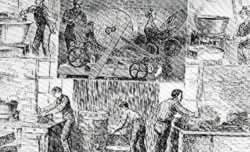 A curious tinkerer with a scientific bent, George Barber acquired tools and equipment for the hand manufacture of matches in 1845. As the venture prospered, his young sons would sell the product door to door in hand baskets. The Barber family and their helpers boosted productivity. Soon the factory relocated to a former blacksmith shop and continued to expand first using water power from the little Cuyahoga and later, after moving to Akron, steam power with water taken from the Ohio Canal.