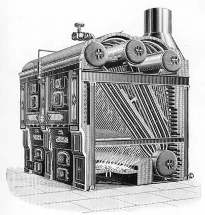 In the 1890's a period of amazing diversification began. A factory making strawboard led to a national consolidation of strawboard manufactures with Barber as president. Aware of the consequences of fire caused by volatile chemicals, Barber formed a company to make fire extinguishers and steel tubing. Through mergers the fire extinguisher company became part of the Grinnell Corporation. When boilers became necessary power sources in the Barber companies, he went into the boiler business with the inventor Allen Stirling, making a new type of boiler. The Stirling Boiler Company became by merger the Babcock and Wilcox Company. Other new enterprises produced sewer pipe, ammunition, aluminum, pottery, tiles, woolen, and felt.